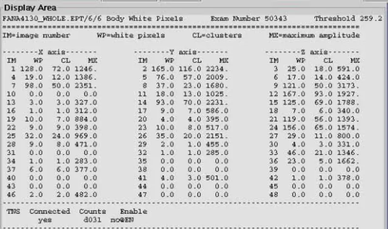 12. SSM এ DD/TR নিষ্ক্রিয় করুন। পেন ওয়াল (J72,J73,J74,J75,J75), EPT সাদা পিক্সেল হেড এবং বডি স্ক্যানে DD তারের সংযোগ বিচ্ছিন্ন করুন। ফলে হেড পাস এবং শরীর ব্যর্থ হয়। বডি কয়েল অপরিচিত, তাই বডি কয়েল সিগন্যাল শোষণ করে। তাই হেড পাস এবং বডি ব্যর্থ হয়। আমাদের ডিডাকশন চেক করার জন্য, হেড কয়েলে এক্সটেনশন ক্যাবল কানেক্ট করুন এবং হেড কয়েলটিকে ম্যাগনেট বোরের বাইরে রাখুন, হেড হোয়াইট পিক্সেল স্ক্যান করুন। প্রকৃতপক্ষে, ফলাফল মাথা ব্যর্থ হয়. পেন ওয়াল, ইপিটি হোয়াইট পিক্সেল হেড এবং বডি স্ক্যানে শুধুমাত্র একটি ডিডি কেবল পুনঃসংযোগ করুন। ফলে সব ব্যর্থ হয়েছে। নিশ্চিত করুন যে ডিডি বোর্ড এবং স্প্লিটার বোর্ড কারণ নয়।