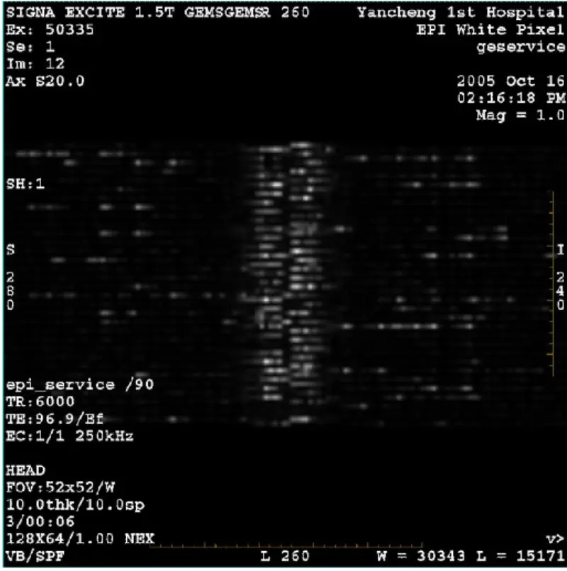 16. TRM থেকে বডি RF কয়েল সরান। হেড ইপিটি সাদা পিক্সেল স্ক্যান চালান, ফলাফল ব্যর্থ হয়েছে৷
