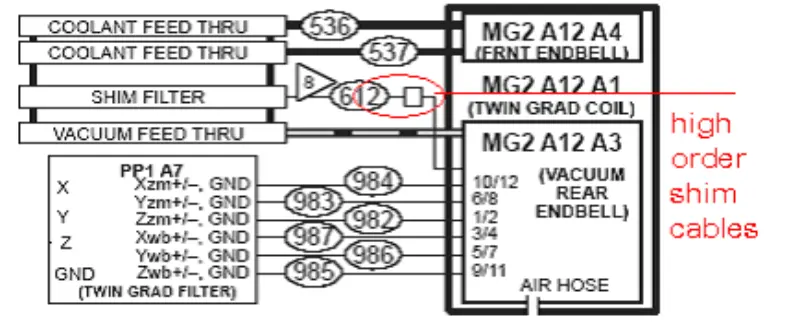 উপরের ক্রিয়া এবং বিশ্লেষণ থেকে, আমরা উপসংহারে পৌঁছেছি যে সমস্যাটি গ্রেডিয়েন্ট কয়েলের কারণে হওয়া উচিত। তাই আমরা চুম্বকের সামনের এবং পিছনের কভারটি সরিয়ে ফেলি, গ্রেডিয়েন্ট কয়েলের সাথে সম্পর্কিত বোল্টগুলি চেক এবং টাইট করি। চুম্বকের পিছনের কভারটি সরানোর পরে, আমরা দেখতে পাই যে হাই অর্ডার শিম কেবলটি পুড়ে কালো হয়ে গেছে।